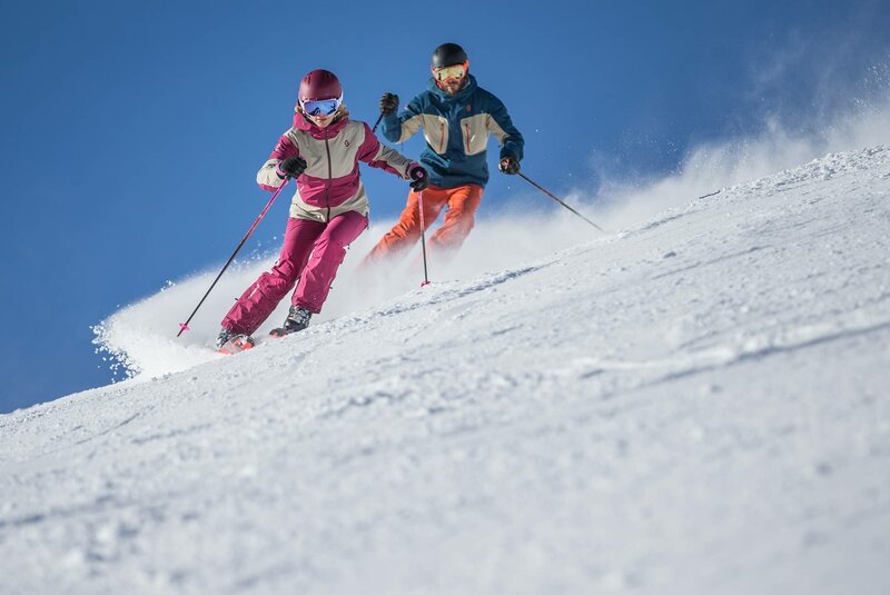 Piste, zwembad en poedersneeuw.